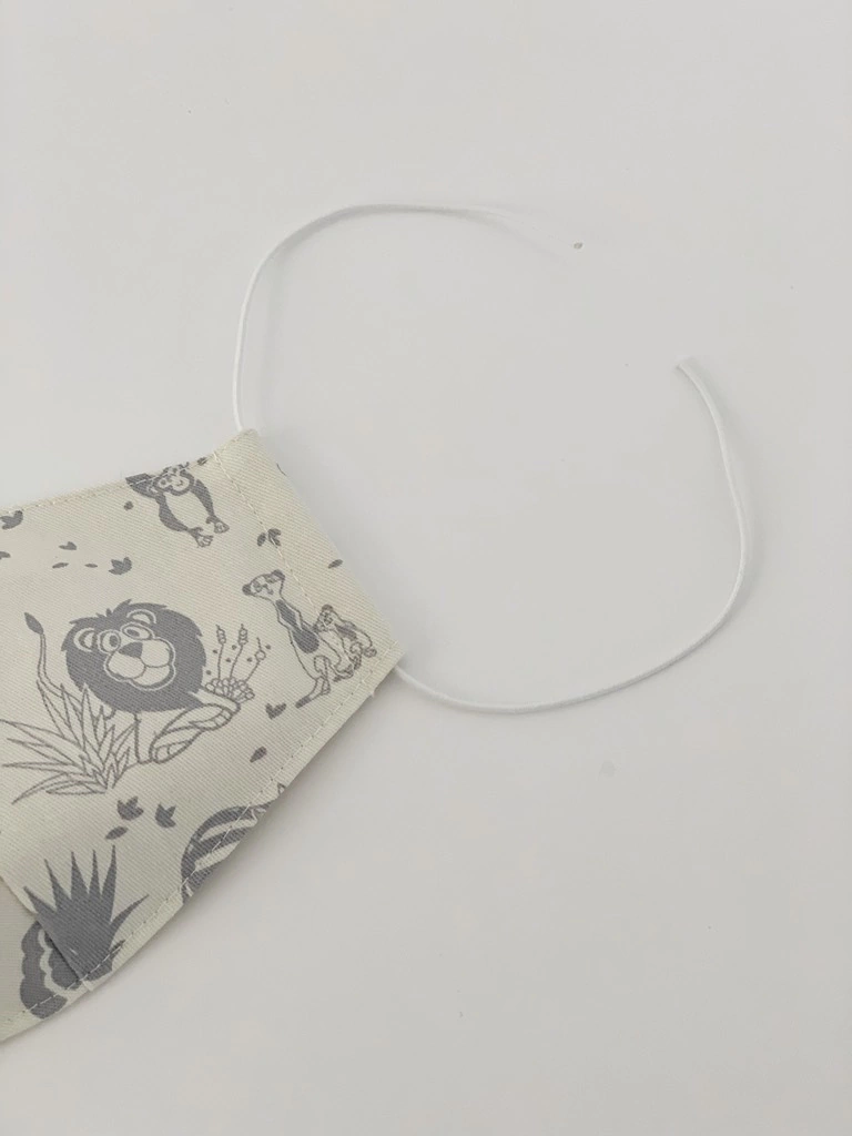El elástico que sostiene el barbijo está abierto para que lo puedas ajustar a la medida exacta con un pequeño nudito y les quede bien colocado. El nudito podés girarlo hasta que quede dentro del dobladillo del barbijo y no les moleste. El elástico es bien finito para que no les incomode atrás de las orejas.