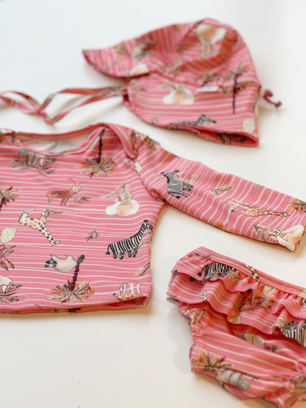 Combinalo con la remera y bombachita del mismo estampado que se venden por separado.
